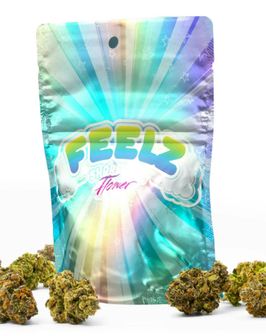 Feelz Cadillac Rainbow is a popular hybrid cannabis strain (Pure Michigan x Runtz) known for its fruity, gassy, citrusy flavor (lemon, diesel, cherry, mint) and potent relaxing, euphoric effects that often induce hunger or "munchies,"