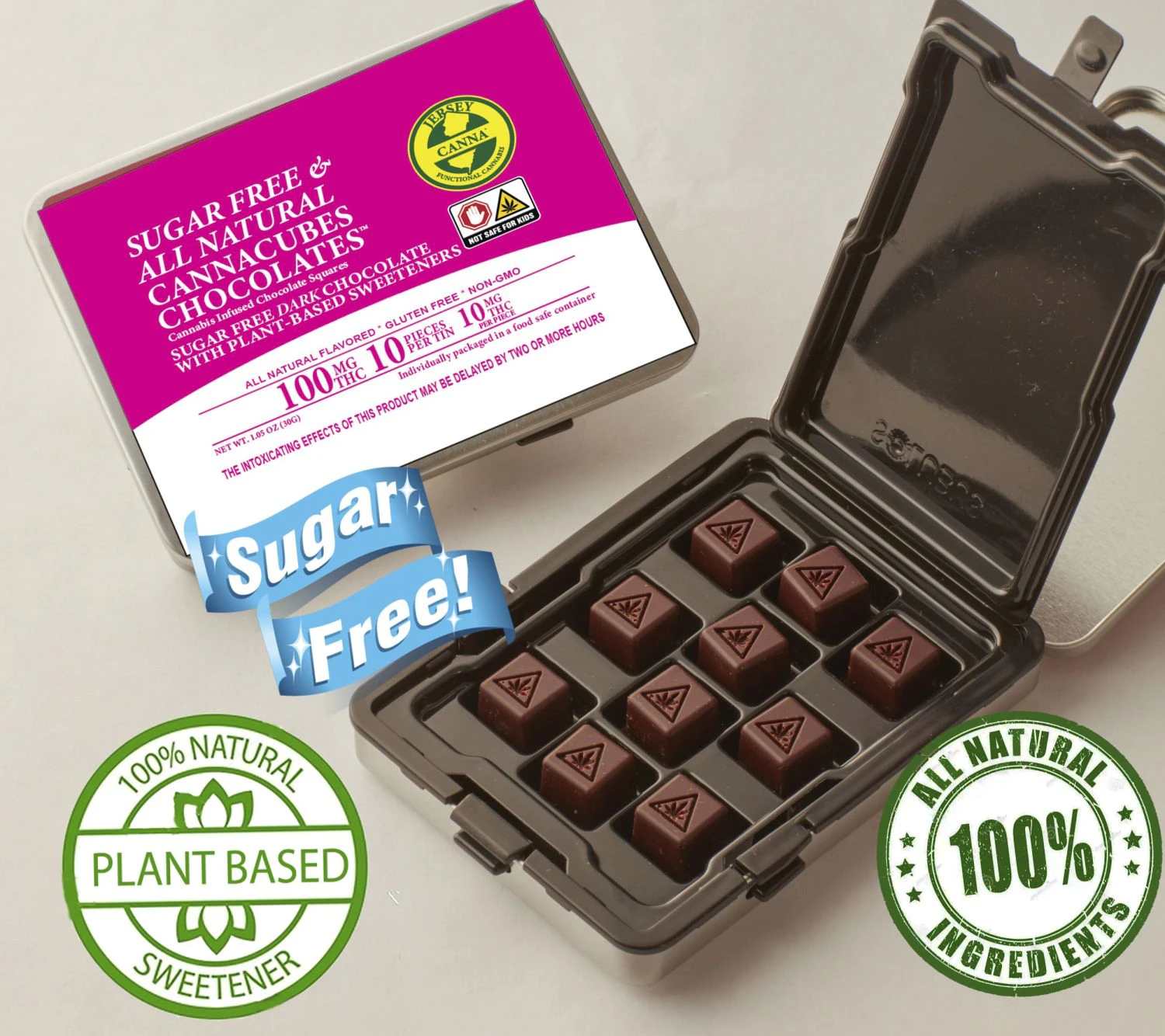 The Sugar Free Cannacubes are made from 100% all-natural leaf-based Stevia. The bar offers the same great Belgian Dark Chocolate taste, but no sugar which means no sugar alcohols or sugar carbs. Sugar reduction can help with weight maintenance, lowering inflammation, reducing high blood pressure, and other diseases with one’s liver according to the International Food Information Council.