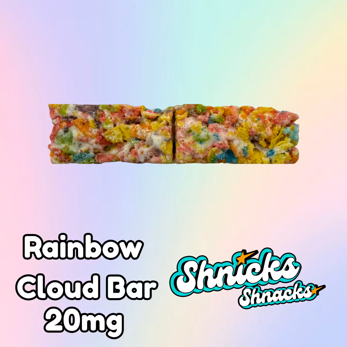 Rainbow Cloud Bar is a mix of fruity cereal and melted marshmallow. It all began here, with a colorful crunch and a burst of fruity flavor that started the Shnicks Shnacks journey. A smaller bar with double the original dose! The Shnicks Shnacks team has hand crafted every edible with love to deliver a nostalgic crunch, rich flavor, and a reliable high. It’s your favorite childhood treat, all grown up.