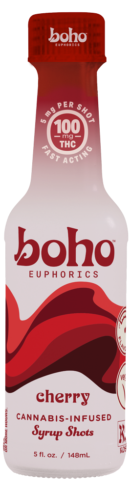 100mg multi-serving (20 x 5mg), kosher, fast-acting, cannabis-infused Cherry-flavored syrup. 5oz glass bottle.