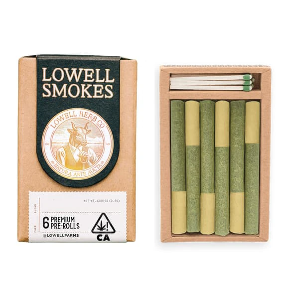 Lowell Smokes “The Happy Hybrid” 6-pack pre-rolls (.6g each) are crafted from premium whole flower, blending 2–3 complementary strains for full-bodied flavor and a broad terpene profile. Each pre-roll delivers a blissful, euphoric hybrid experience. Packs include matches and a striker for convenient, on-the-go enjoyment.