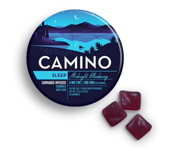 5mg THC & 1mg CBN per piece | 100mg THC & 20mg CBN total in 20 pieces -- EFFECT: Sleep (Indica) -- Our top selling product - and for a reason. Settle in for a smooth slumber by a serene lake and let all your worries go. This calming combination of THC, CBN, and relaxing, indica-like terpenes pair with chamomile and lavender extracts to promote restful sleep. -- There’s a Camino for every taste, tolerance, and occasion. With a variety of terpene-tailored effects and delicious fruit flavors, we invite you to explore our family of Camino edibles. We know you’ll… find your sweet spot. -- TERPENES: • Myrcene - Improves the speed and intensity of the cannabis high by allowing THC to cross the blood-brain barrier more easily. • Linalool - Anti-anxiety and sedating effects. • Beta-Caryophyllene - May assist with the body's response to anxiety and stress. (plus chamomile and lavender extract)