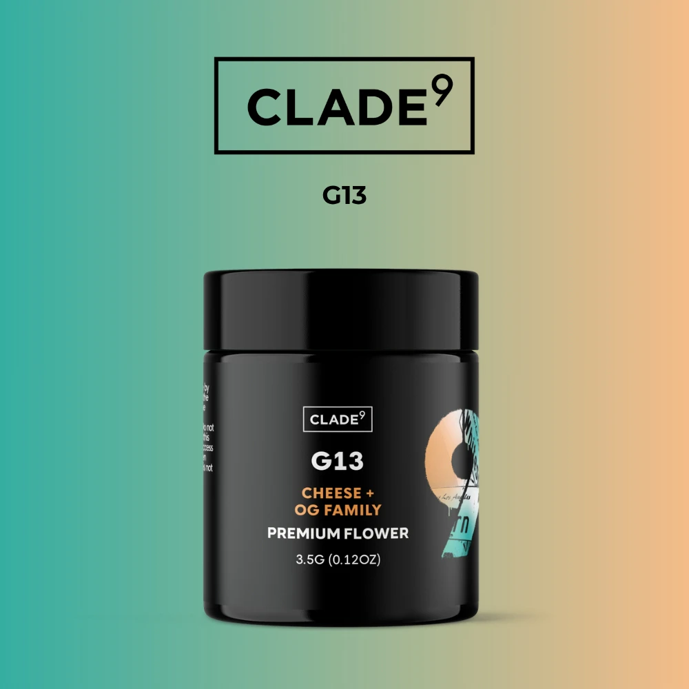 Background: G13 is a renowned hybrid strain crafted by Clade9, a leading cannabis cultivator known for its innovative genetics. It's a cross between OG Kush and Purple Gorilla