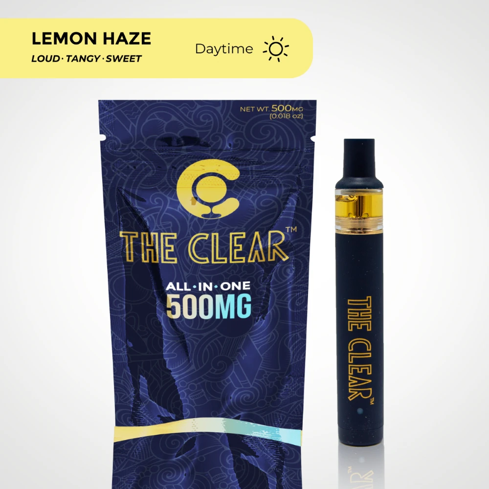 The All-in-one vape is a discreet, pocket-sized version of The Clear Original cartridge that comes fully equipped for easy consumption. This vape contains 500mg of our ultra-premium distillate with added plant derived terpenes. Lemon Haze is a daytime flavor that’s loud, tangy and delicious with sweet, sour tasty flavor notes.