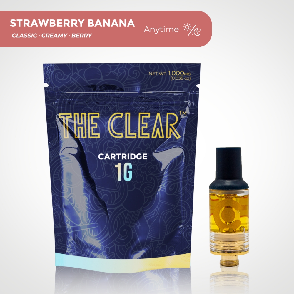 Our nationally known THC distillation process creates an award-winning extract featured in all The Clear products. The Clear Original cartridge delivers pureness and potency in convenient vape format. Strawberry Banana is the anytime summer flavor you’ve been craving, with natural berry tastes on inhale paired with a banana creaminess, it’s as delicious as a smoothie.