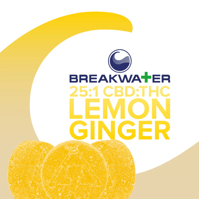 [MED] Breakwater | Lemon Ginger 25:1 CBD:THC | 100mg/10pk Soft Chews